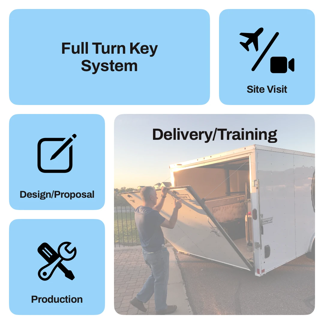 As soon as production and testing is complete, your Church On Wheels system is delivered. System delivery normally occurs over the course of a weekend a couple weeks before a preview service. A team from Church On Wheels will work with your volunteers to ensure that they have the knowledge and skills to safely and efficiently operate all equipment and utilize the mobile solutions designed by Church On Wheels to their maximum potential.