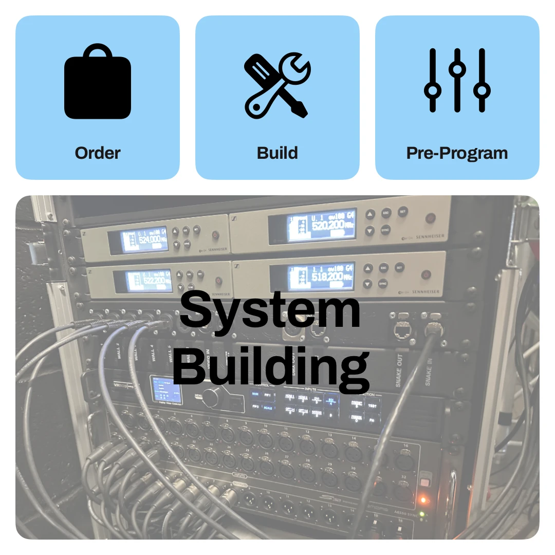 Some of you are like us and enjoy designing and coming up with a plan. So, if you already know what you want in each area and have every detail like the exact number of cables figured out, we can still help. We are happy to supply the items and build the system in our facility. This will still provide you with volume discounts and save you hundreds of hours building and racking gear! If necessary, we can add in a delivery and training, teaching your volunteers how to effectively setup and tear down your design.